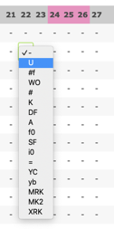 To mark an existing shift, select MRK from the dropdown. The shift will be highlighted in blue and displayed in the employee's personal view as well as in the entire roster printout.
